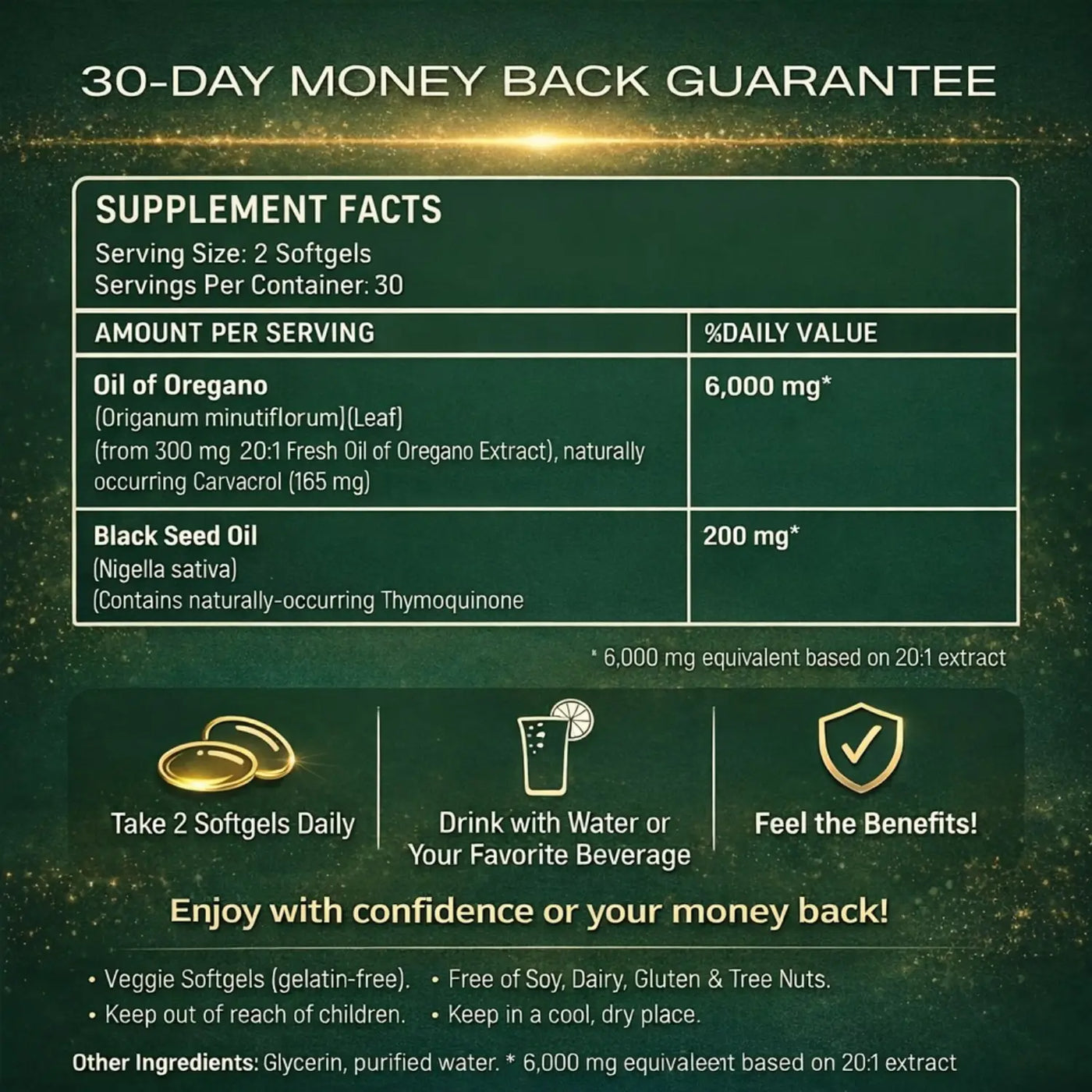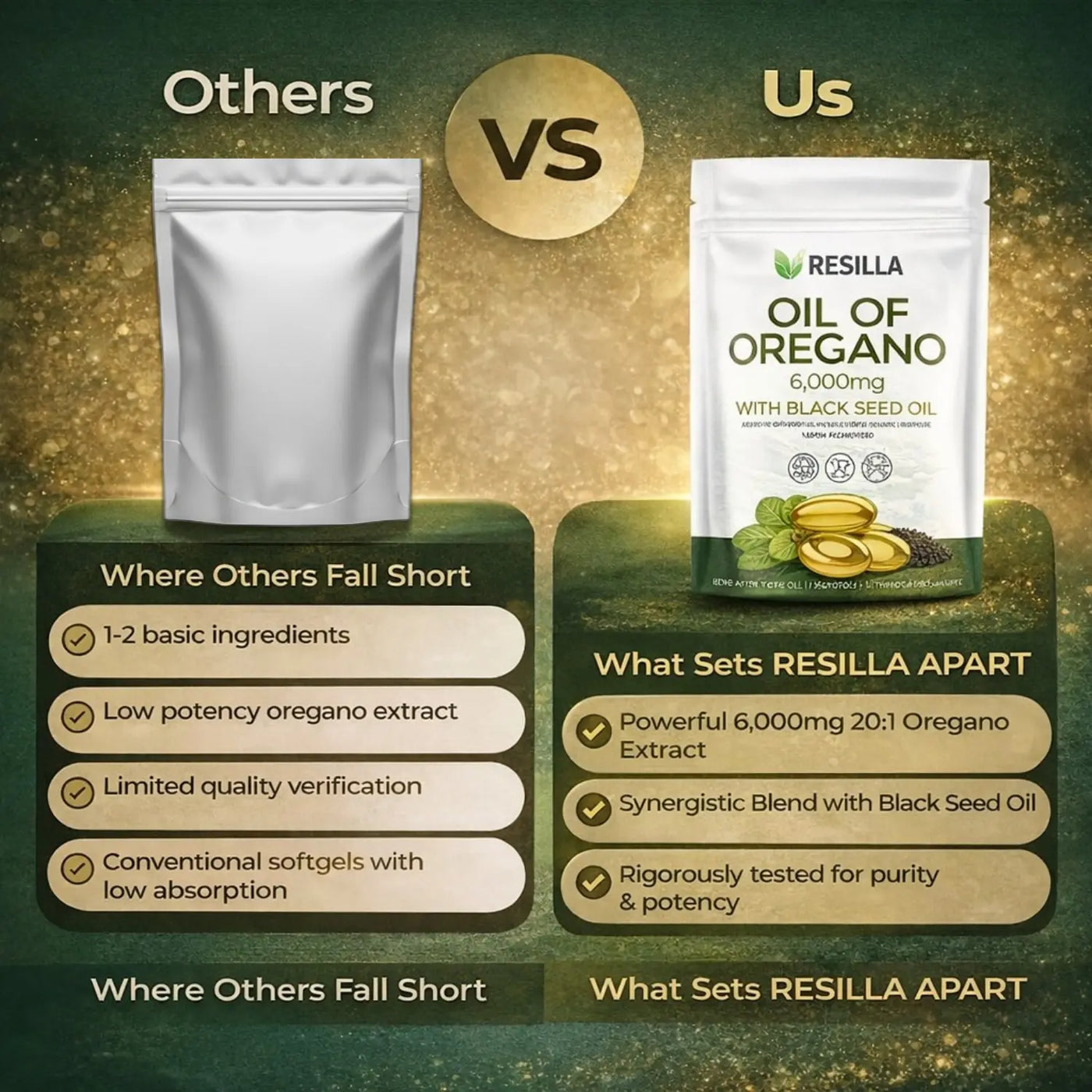 Resilia combines high-potency oregano oil with black seed oil creating a synergistic botanical blend designed to support both immune resilience and gut balance, not just one or the other.